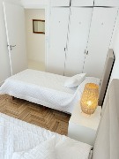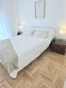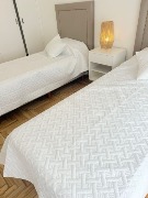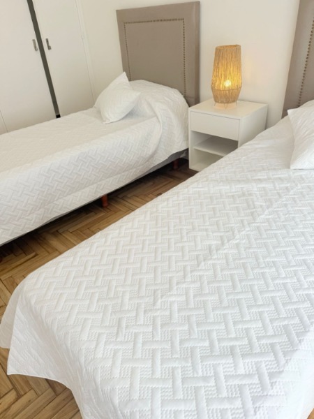 🛌 Segundo dormitorio a la calle, también con balcón francés, parquet lustrado, placard con baulera, dos sommier de una plaza con respaldos, mesas de luz y ropa de cama