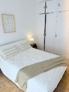 🛌 Dormitorio principal a la calle, con balcón francés, pisos de parquet lustrado y plastificado, amplio placard con baulera. Equipado con cama de 2 plazas, mesas de luz y ropa de cama
