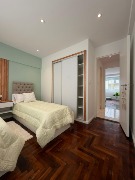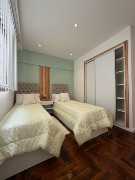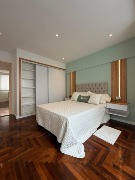 🛌 Dormitorio con pisos de parquet pulidos, lustrados y plastificados, placard amplio, sommier de 2 plazas, respaldo y mesas de luz