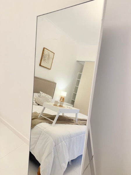 🛌 Habitación principal con Sommier Cannon exclusive de 1.80 mt., con respaldo, mesitas de luz, espejo, placard a medida, sillón de apoyo y salida al patio mediante puerta balcón