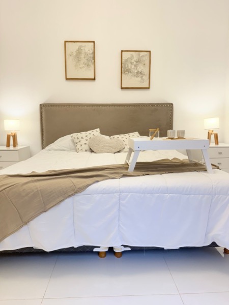 - Cama con respaldo y mesa de luz en dependencia