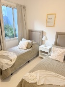 🛏️ Habitación con dos camas, respaldos, mesa de luz y placard a medida